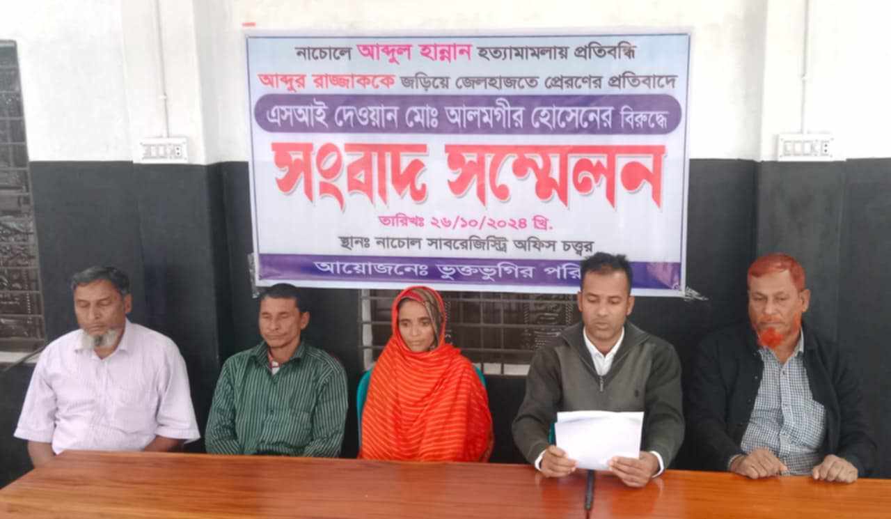 ওই প্রতিবন্ধি যুবককে থানায় নিয়ে গিয়ে ভয়ভীতি দেখিয়ে স্বীকারোক্তি নিয়ে হত্যা মামলায় জড়িয়ে ২২ অক্টোবর জেলহাজতে প্রেরণ করেন। এরই প্রেক্ষিতে প্রতিবন্ধি যুবকের পিতা টানু আলী, মাতা মোসাঃ চেনা বেগম এর পক্ষে তার মামা তরিকুল ইসলাম সংবাদ সম্মেলনে লিখিত বক্তব্য পাঠ করেন।
