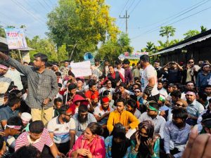 ছবি সংযুক্ত ঃ ভোলা-বরিশাল সেতুর দাবীতে ভোলা ২২৫ মেগাওয়াট বিদ্যুৎ কেন্দ্র ঘেরাও করে আছে আন্দোলনকারীরা ।