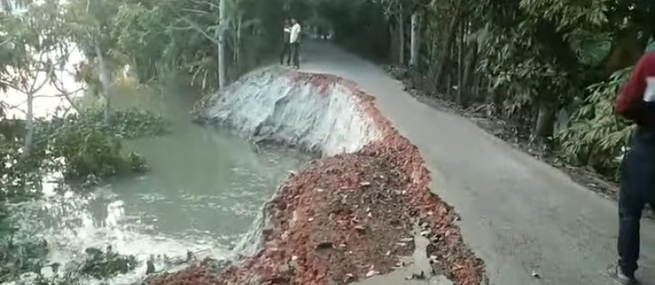 বরিশাল জেলার উজিরপুর উপজেলার সাতলায় ইউনিয়নে রাজাপুর গ্রামে ৩ জেলার লক্ষ লক্ষ মানুষের চলাচলের একমাত্র সড়ক নদী গর্ভে বিলীন হয়ে গেছে। এতে করে একদিকে যোগাযোগ বিচ্ছিন্ন হয়েছে,অপরদিকে হতাশ কৃষক ও মৎস্য চাষিরা। দূর্ভোগ রক্ষায় প্রশাসনের সুদৃষ্টি কামনা করেছে মানুষ। সরেজমিনে গিয়ে দেখা যায় উজিরপুর উপজেলার হারতা টু সাতলা রাস্তার রাজাপুর এলাকায় কচা নদীর ভাঙনের কবলে সড়কটি হঠাৎ বিলীন হয়ে গেছে। এই পিচঢালা সড়কটি দিয়ে বরিশাল জেলার উজিরপুর উপজেলা, গোপালগঞ্জে জেলার কোটালিপাড়া উপজেলা ও খুলনা জেলার লক্ষ লক্ষ মানুষ যাতায়াত করে। এছাড়া কৃষক ও মৎস্য চাষিরা দুশ্চিন্তায়, সম্পূর্ণ রাস্তাটি বিলীন হয়ে গেলে শত কোটি টাকার মাছ ও ধানের ক্ষতি হবে। স্থানীয় সুত্রে জানা গেছে ওই রাস্তার আওতায় রয়েছে স্কুল, মাদ্রাসা,বাজার,সাতলা ও হারতা ইউনিয়নের শত কোটি টাকার মৎস্য ঘের ও ধান চাষের জমি। স্থানীয়রা আরো বলেন নদী থেকে অবৈধ ভাবে বালু উত্তোলন ও স্রতের কারনেই রাস্তা ভাঙনের কবলে পড়ে মানুষকে চরম ভোগান্তির শিকার হতে হয়। এ ব্যপারে সাতলা ইউনিয়ন বিএনপির সভাপতি মোঃ মেজবাহ উদ্দিন জানান ৩ জেলার লক্ষ লক্ষ মানুষ এ রাস্তা দিয়ে চলাফেরা করে থাকে। এছাড়াও কোটি কোটি টাকার মৎস্য চাষ করেছে ব্যবসায়ীরা। সম্পূর্ণ রাস্তাটি নদীর ভাঙনে বিলীন হলে আর্থিক ভাবে ক্ষতিগ্রস্থ হবে ব্যবসায়ী ও কৃষকরা। বিষয়টি পানি উন্নয়ন বোর্ডের কর্তৃপক্ষকে অবহিত করা হয়েছে। উজিরপুর উপজেলা প্রকৌশলী সুব্রত রায় জানান বিষয়টি উর্ধ্বতন কর্তৃপক্ষকে অবহিত করে পরবর্তীতে ব্যবস্থা গ্রহণ করা হবে। উজিরপুর নির্বাহী কর্মকর্তা মোঃ আলী সুজা জানান বিষয়টি তাৎক্ষণিক উপজেলা প্রকৌশলীকে অবহিত করা হবে। এদিকে এ মরণফাঁদ থেকে রক্ষা পেতে অচিরেই রাস্তাটি সংস্কারের দাবি জানিয়ে প্রশাসনের উর্ধ্বতন কর্তৃপক্ষের সু-দৃষ্টি কামনা করেছেন সাতলাবাসী।