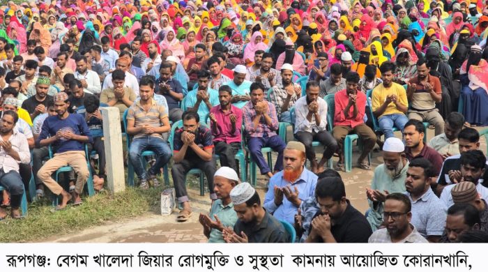 সাবেক প্রধানমন্ত্রী ও বিএনপির চেয়ারপার্সন দেশনেত্রী বেগম খালেদা জিয়ার রোগমুক্তি ও সুস্থতা কামনা করে ম্যাক্স সোয়েটার কারখানার মাঠে দুই দিনব্যাপী কোরানখানি, দোয়া ও মিলাদ মাহফিলের আয়োজন করা হয়। গতকাল ৩ডিসেম্বর বুধবার ও গত বৃহস্পতিবার বিজিএমইএ’র সাবেক সভাপতি ও বিএনপির কেন্দ্রীয় নির্বাহী কমিটির সদস্য বীরমুক্তিযোদ্ধা কাজী মনিরুজ্জামানের উদ্যোগে আয়োজিত এ দোয়া মাহফিলে বিপুল সংখ্যক নারী-পুরুষ অংশ নেয়।
