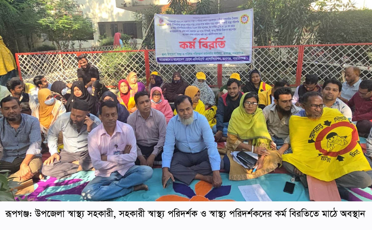 নারায়ণগঞ্জের রূপগঞ্জ উপজেলা স্বাস্থ্য কমপ্লেক্সের স্বাস্থ্য সহকারীদের ৬দফা দাবিতে কর্ম বিরতি চলছে। গতকাল ৬নভেম্বর শনিবার স্বাস্থ্য কমপ্লেক্স মাঠে আয়োজিত কর্ম বিরতি কর্মসূচিতে সভাপতিত্ব করেন রূপগঞ্জ উপজেলা স্বাস্থ্য সহকারী, সহকারী স্বাস্থ্য পরিদর্শক ও স্বাস্থ্য পরিদর্শক এসোসিয়েশনের সভাপতি মাকসুদুল হাসান।