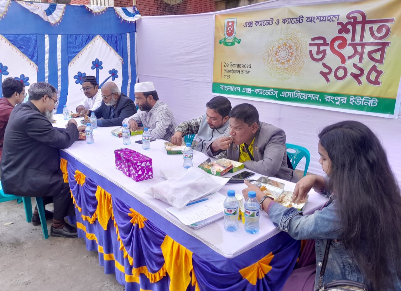 ঐতিহ্যবাহী কারমাইকেল কলেজ ক্যাম্পাসে গত শুক্রবার (১২ ডিসেম্বর) এক্স ক্যাডেট অ্যাসোসিয়েশন, রংপুর ইউনিট-এর উদ্যোগে সাবেক এবং বর্তমান ক্যাডেটদের অংশগ্রহণে অনুষ্ঠিত হলো দিনব্যাপী 'শীত উৎসব ২০২৫'। উৎসবটি মিলনমেলায় পরিণত হয়, যেখানে খেলাধুলা, সাংস্কৃতিক অনুষ্ঠান এবং পিঠা উৎসবের মাধ্যমে ক্যাডেটরা মেতে ওঠেন।
