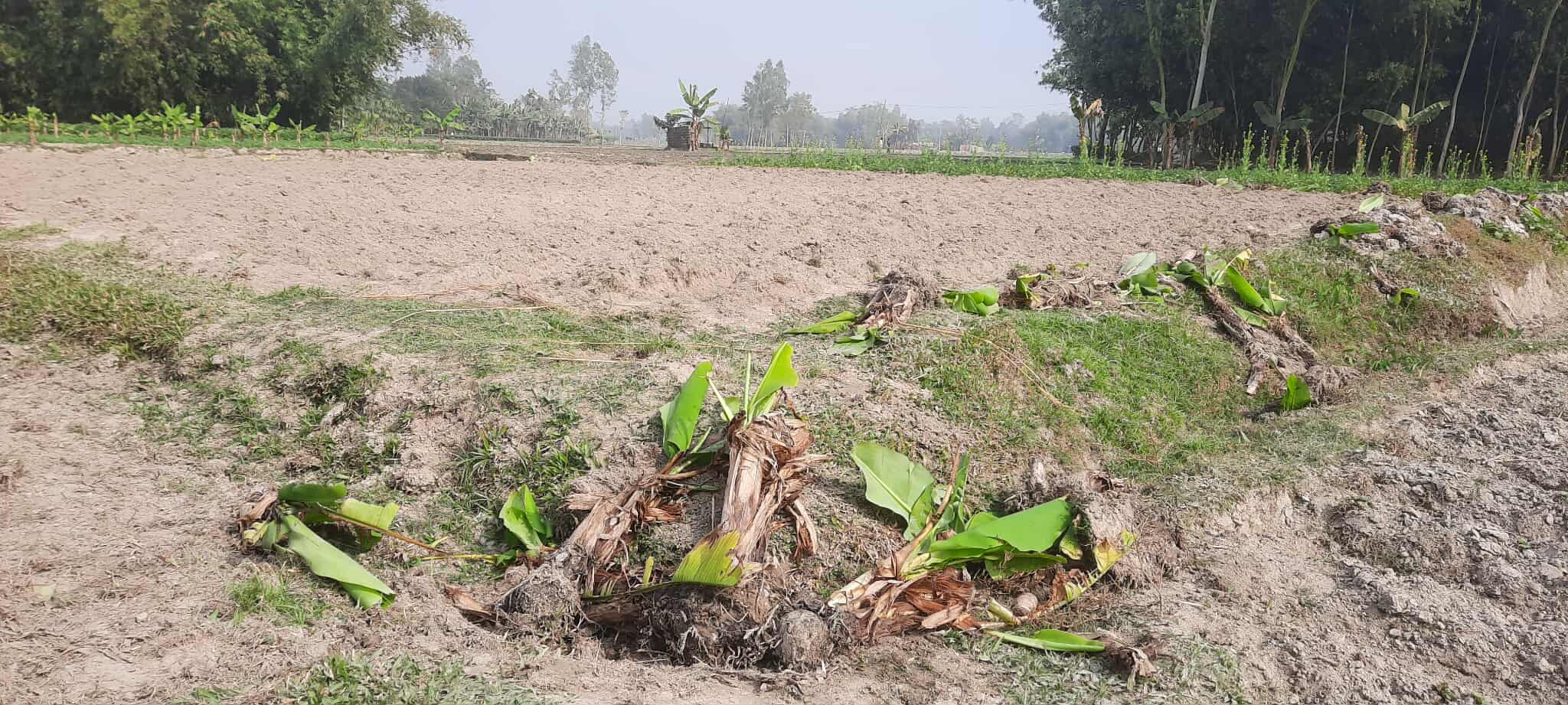 নীলফামারীতে আদালত থেকে জমির মালিকানা সংক্রান্ত রায় পাওয়ার পরও জমি দখলের পায়তারা চালানোর অভিযোগ উঠেছে প্রতিপক্ষের বিরুদ্ধে। এ ঘটনায় নিজস্ব জমিতে রোপণ করা প্রায় চার শতাধিক কলাগাছ উপড়ে ফেলে নষ্ট করার অভিযোগ করেছেন ভুক্তভোগীরা।