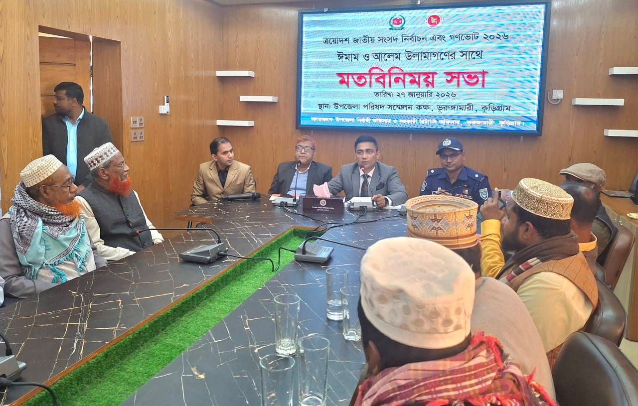 কুড়িগ্রামের ভুরুঙ্গামারীতে ত্রয়োদশ জাতীয় সংসদ নির্বাচন ও গণভোট-২০২৬ উপলক্ষে ইমাম ও আলেম উলামাগণের সাথে উপজেলা প্রশাসনের মতবিনিময় সভা অনুষ্ঠিত হয়েছে।