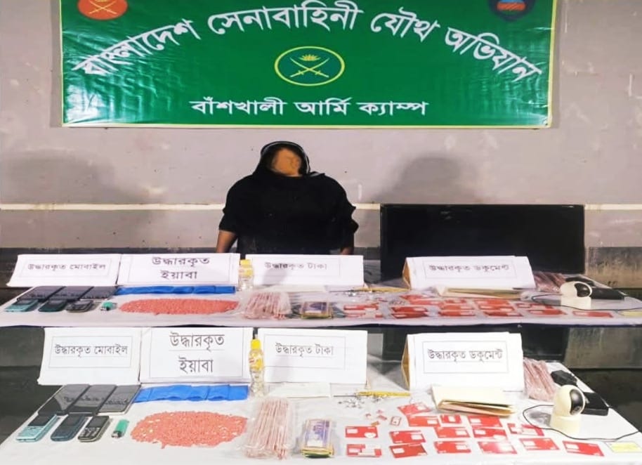 বাঁশখালীতে সেনাবাহিনীর মাদকবিরোধী অভিযানে ১ হাজার ইয়াবাসহ নারী গ্রেপ্তার, স্বামী পলাতক।