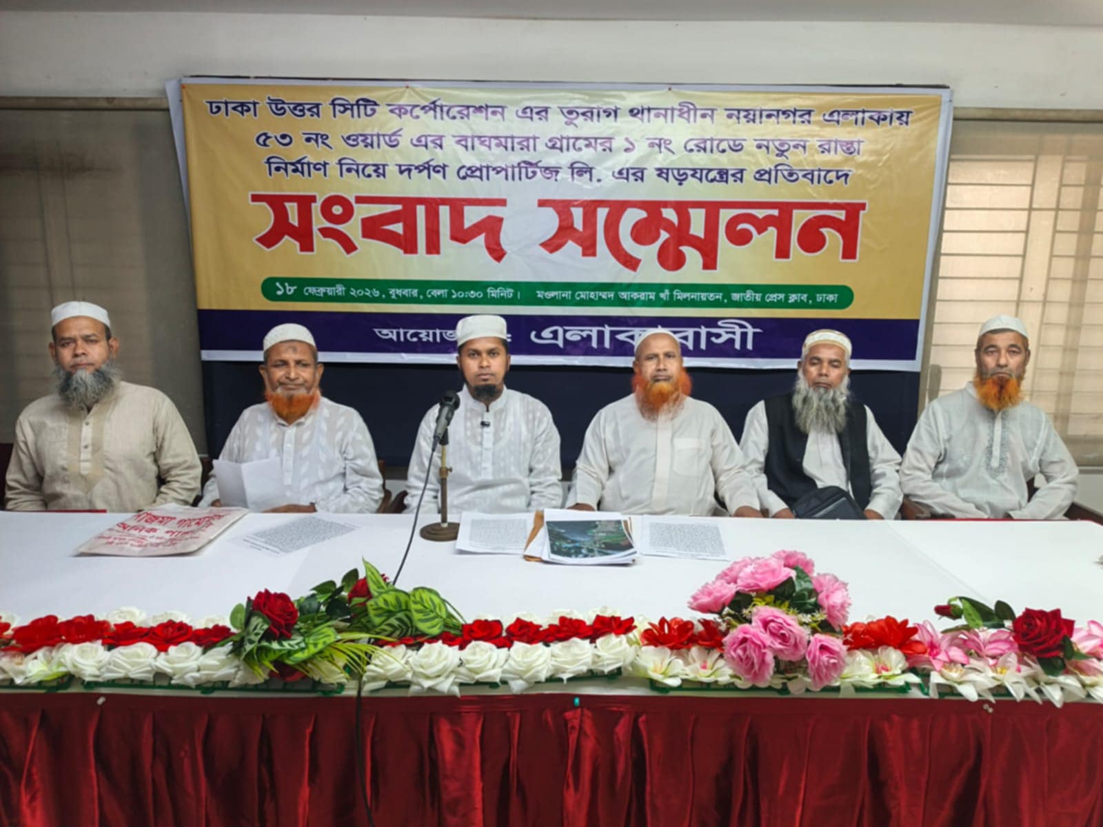 রাজধানীর নয়ানগর এলাকায় চলমান সড়ক সম্প্রসারণ প্রকল্পকে ঘিরে তথাকথিত মানববন্ধনের তীব্র প্রতিবাদ জানিয়ে সংবাদ সম্মেলন করেছেন স্থানীয় বাসিন্দারা। বুধবার জাতীয় প্রেস ক্লাবে আয়োজিত সংবাদ সম্মেলনে এলাকাবাসী অভিযোগ করেন