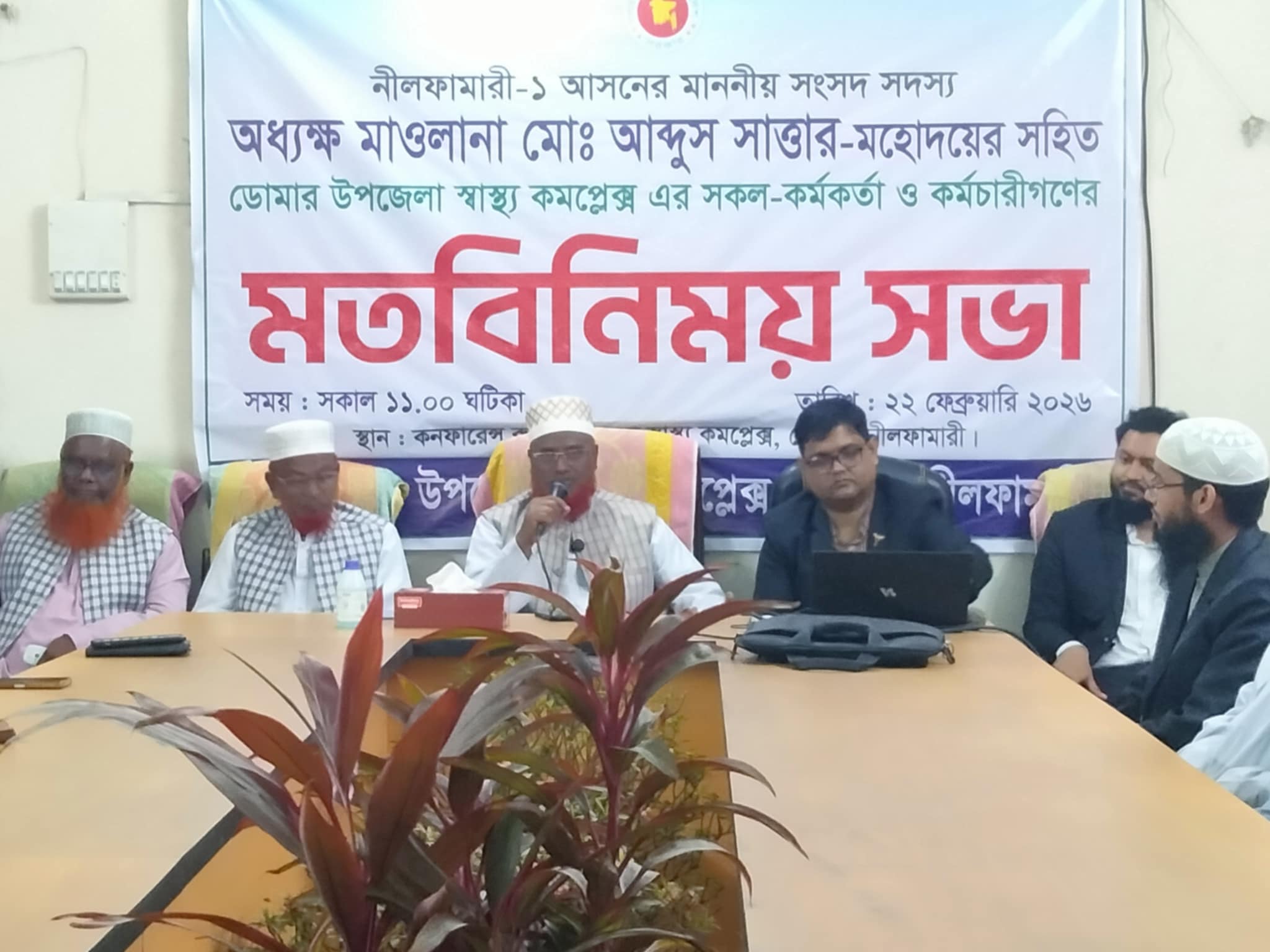 পরবর্তীতে স্বাস্থ্য কমপ্লেক্সের কনফারেন্স রুমে কর্মকর্তা-কর্মচারীদের সঙ্গে এক মতবিনিময় সভা অনুষ্ঠিত হয়। এ সময় অন্যান্যদের মধ্যে উপস্থিত ছিলেন ডোমার উপজেলা জামায়াতে ইসলামীর আমির আব্দুল হাকিমসহ সংশ্লিষ্ট ব্যক্তিবর্গ।