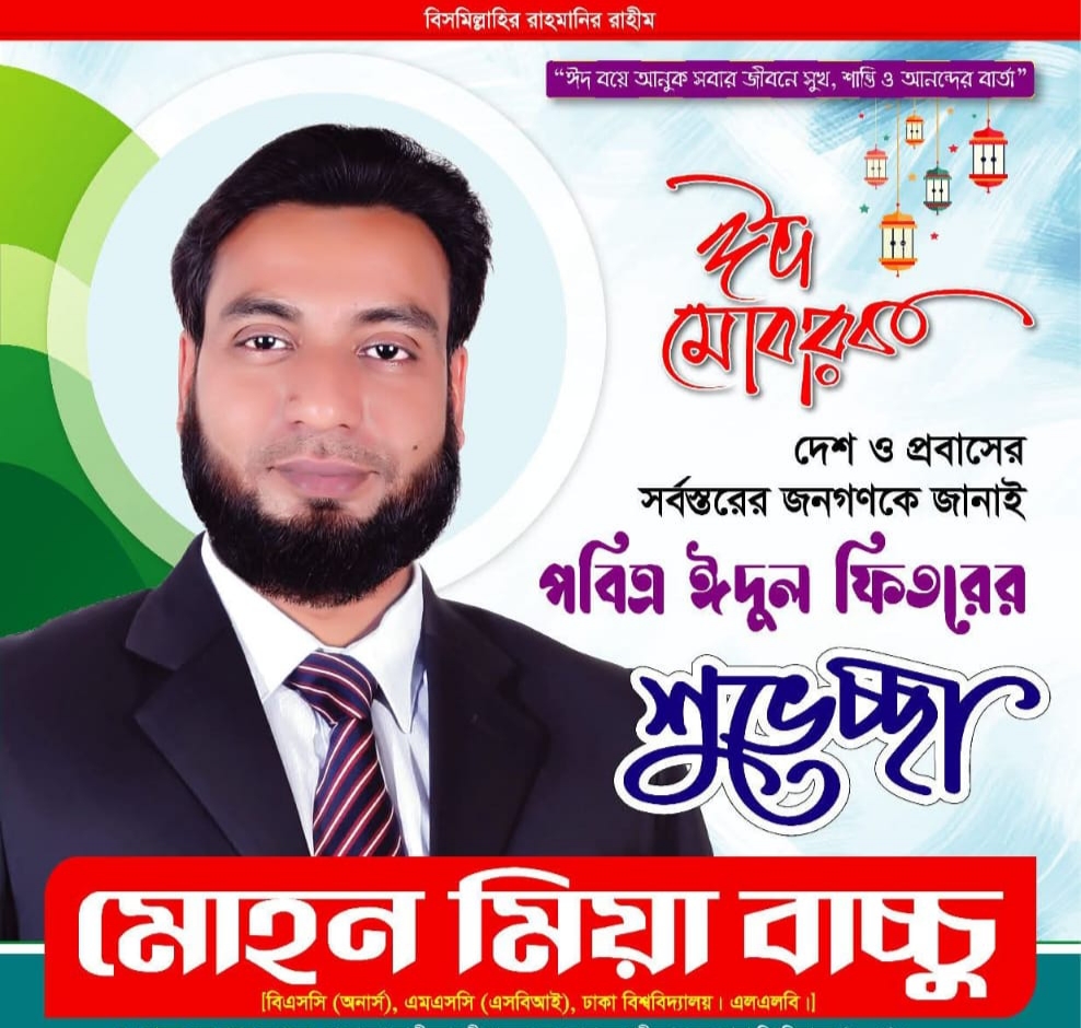 ঈদ বয়ে আনুক সবার জীবনে সুখ, শান্তি ও আনন্দের বার্তা।